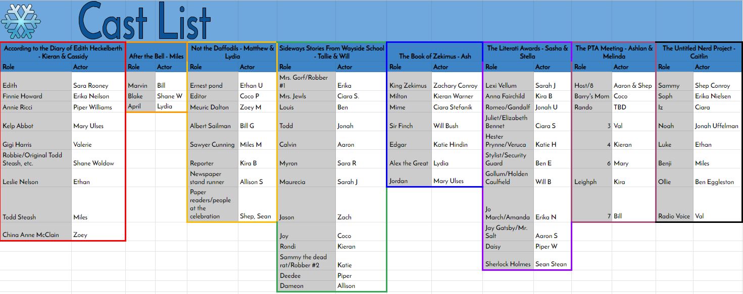 This was my high school’s first performance since the start of the pandemic. We decided to put on eight One Act productions that were directed by students in the virtual environment. All of these shows were prerecorded using virtual meeting platforms like Zoom. I helped produce all of these One Acts by organizing auditions and publishing the One Act videos to YouTube.